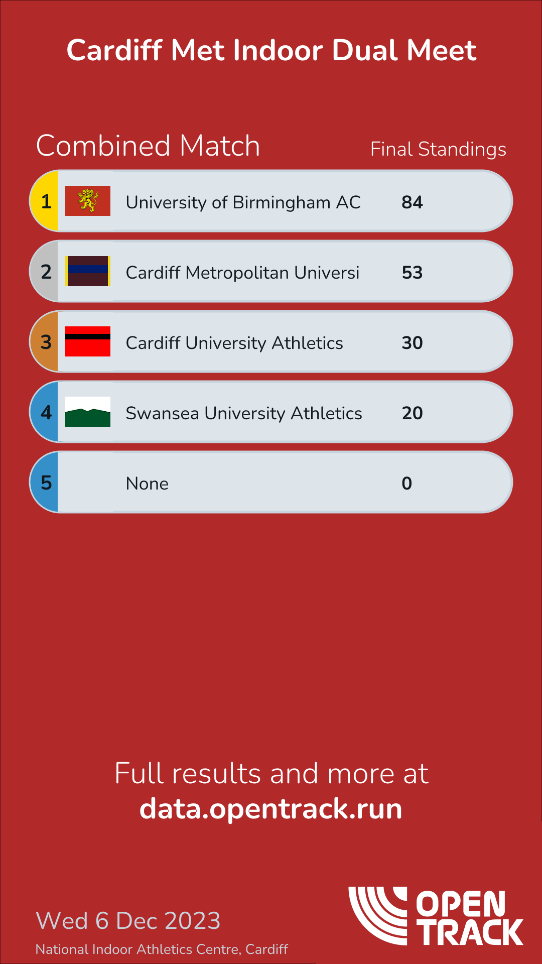 | Female Relay | 5 | 3 | 0 | 4 | 0 |