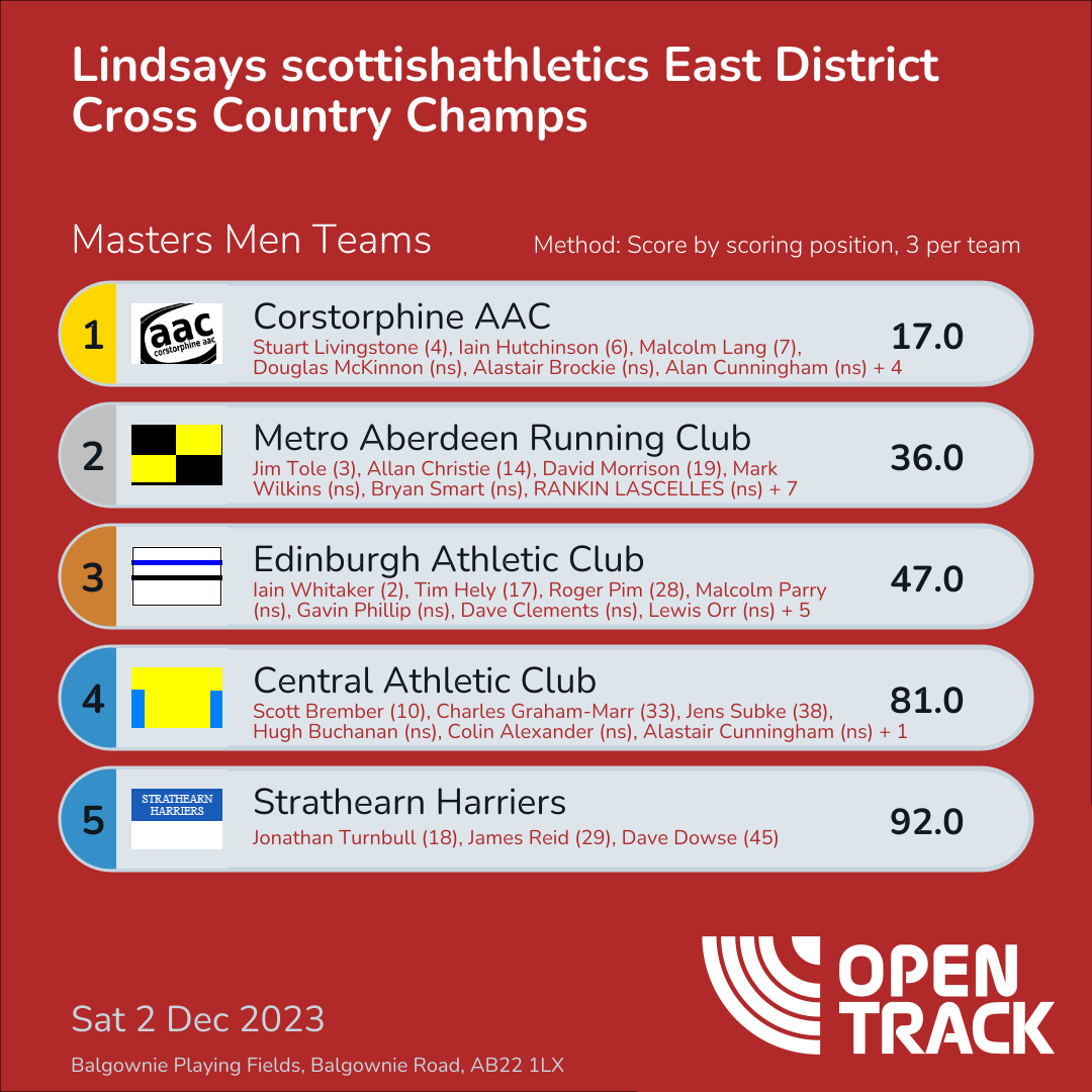 17.0 | 31: Stuart Livingstone (4), 51: Iain Hutchinson (6), 52: Malcolm Lang (7) | |