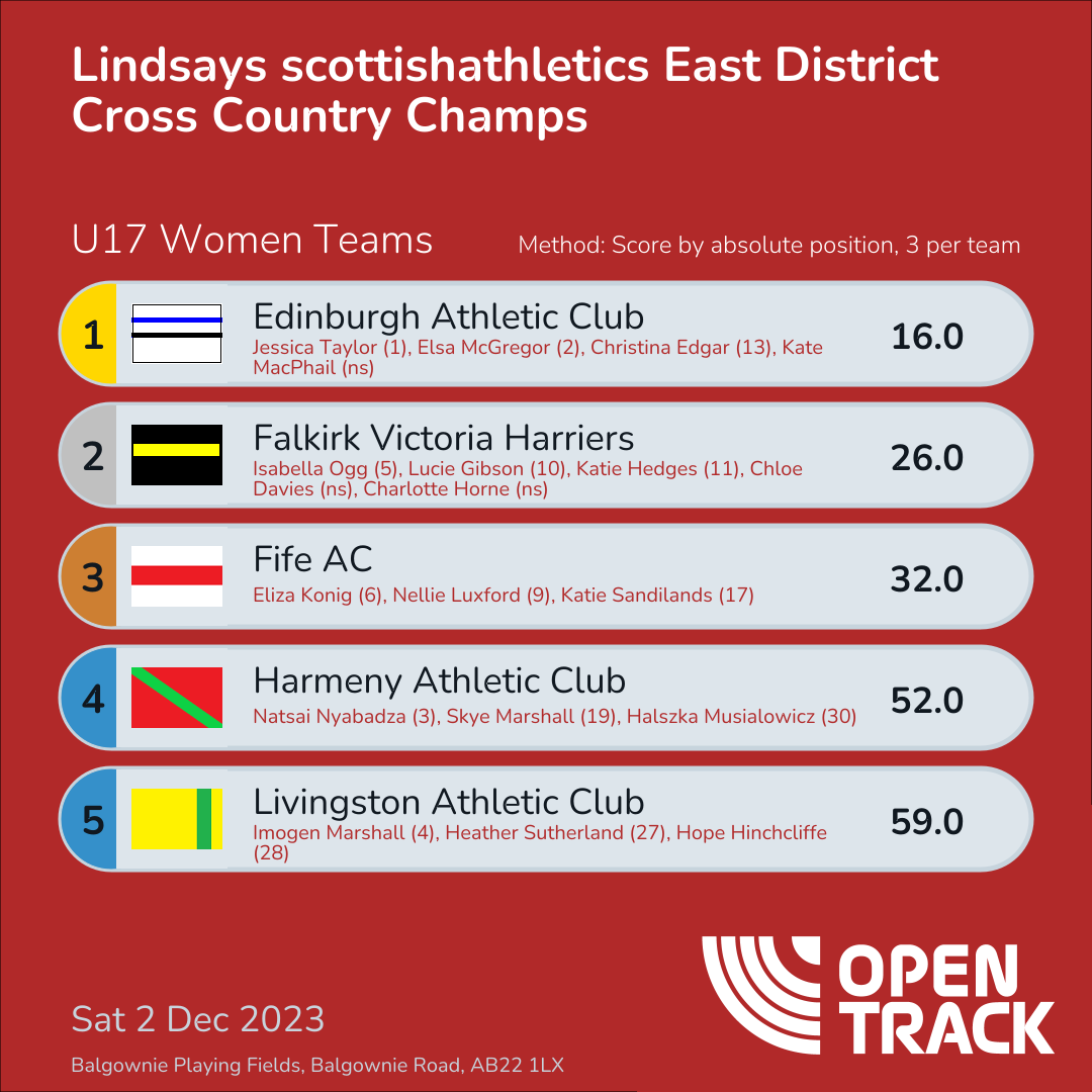 16.0 | 1: Jessica Taylor (1), 2: Elsa McGregor (2), 13: Christina Edgar (13) | |
