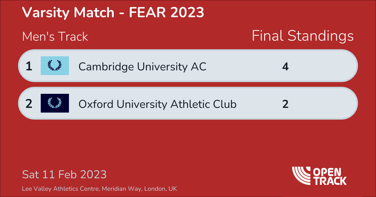 Last calculated: 3 Mar 2025, 11:30 p.m.Men's Track