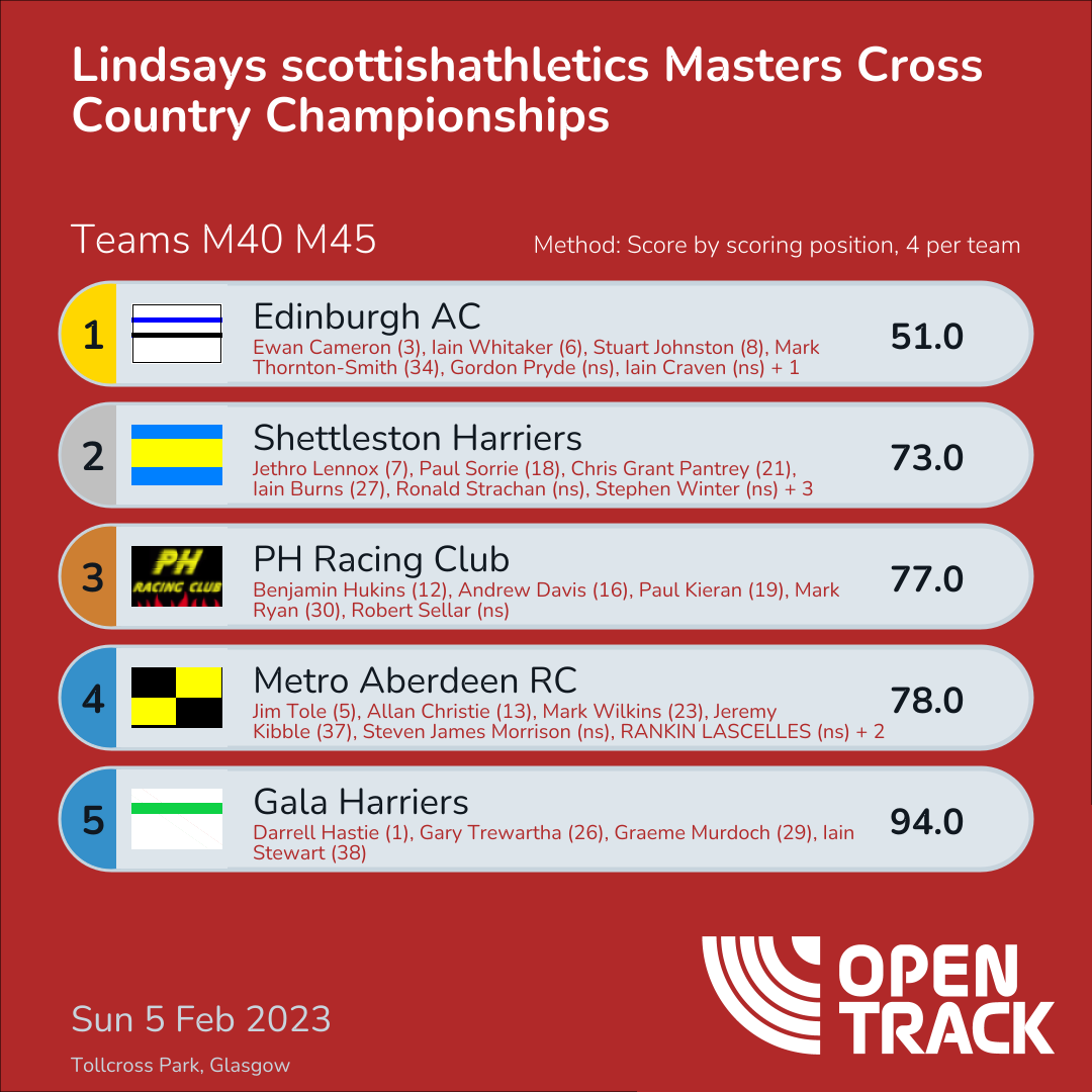 | 39 | 31 | John Speirs | M45 |