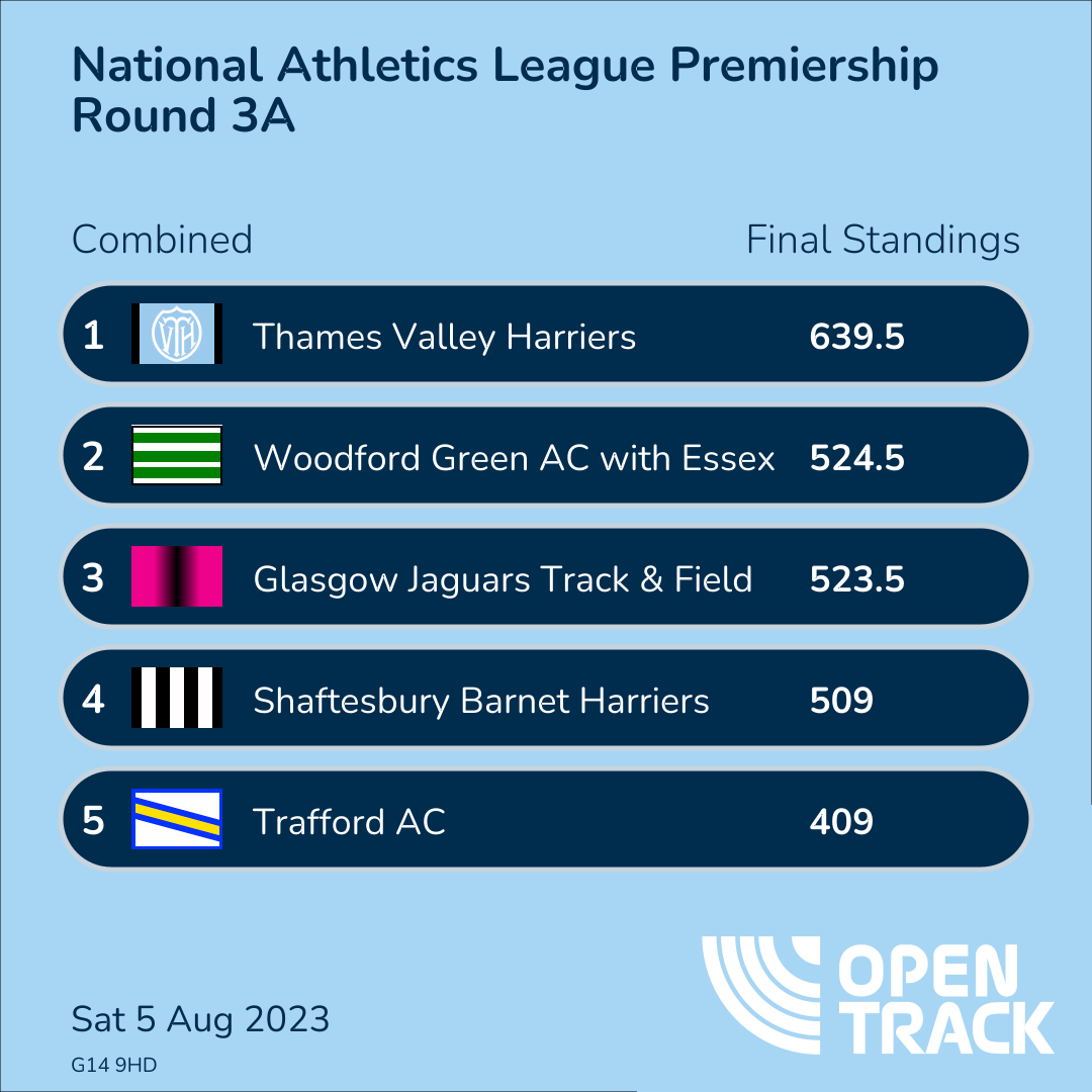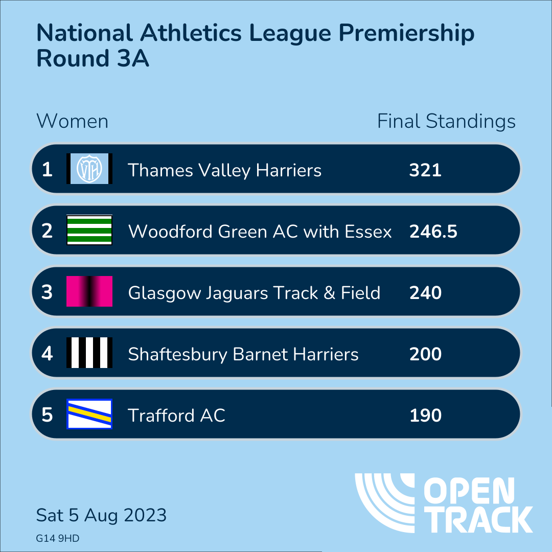 | Women's 4 x 400m Relay | 12 | 6 | 10 | 4 | 7 | 8 | 5 |