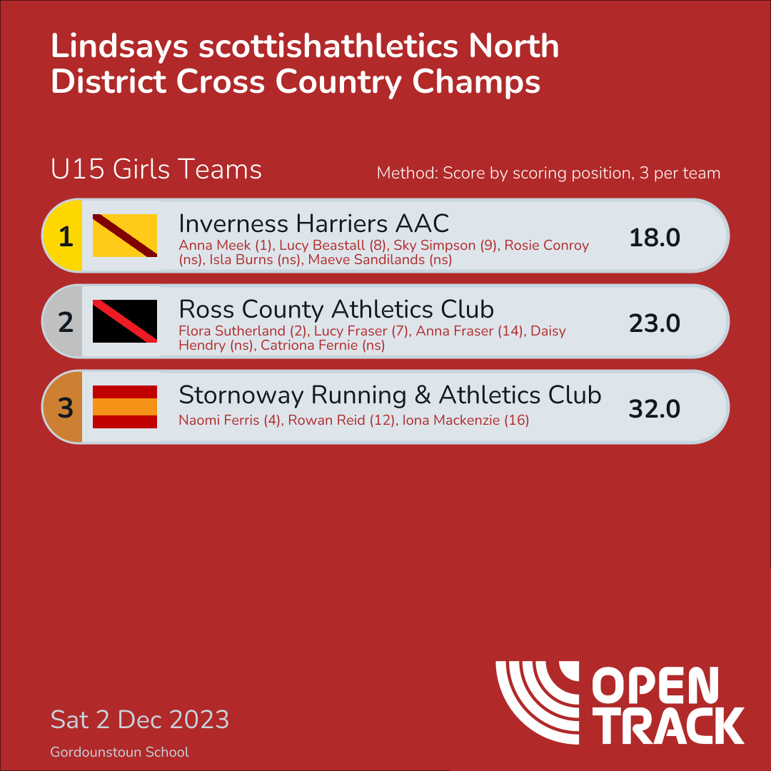 | 2 | 2 | Flora Sutherland | U15G |