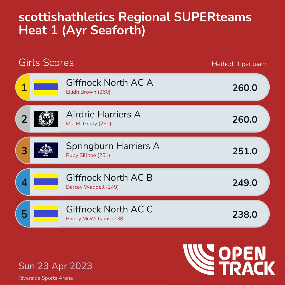 260.0 | 7: Eilidh Brown (260) | |