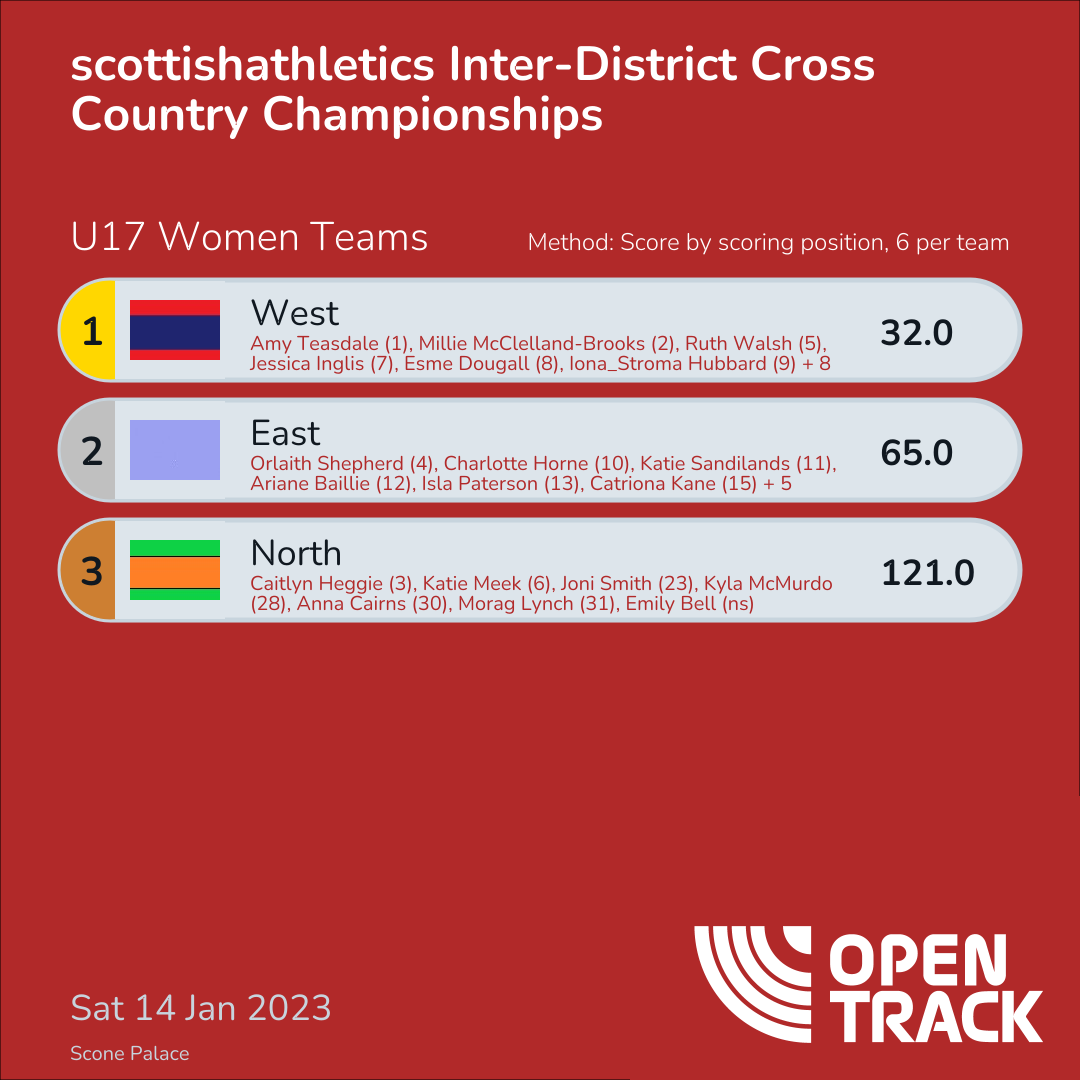 | 1 | WEST | 32.0 | 7: Amy Teasdale (1), 9: Millie McClelland-Brooks (2), 16: Ruth Walsh (5), 19: Jessica Inglis (7), 21: Esme Dougall (8), 24: Iona_Stroma Hubbard (9) | |