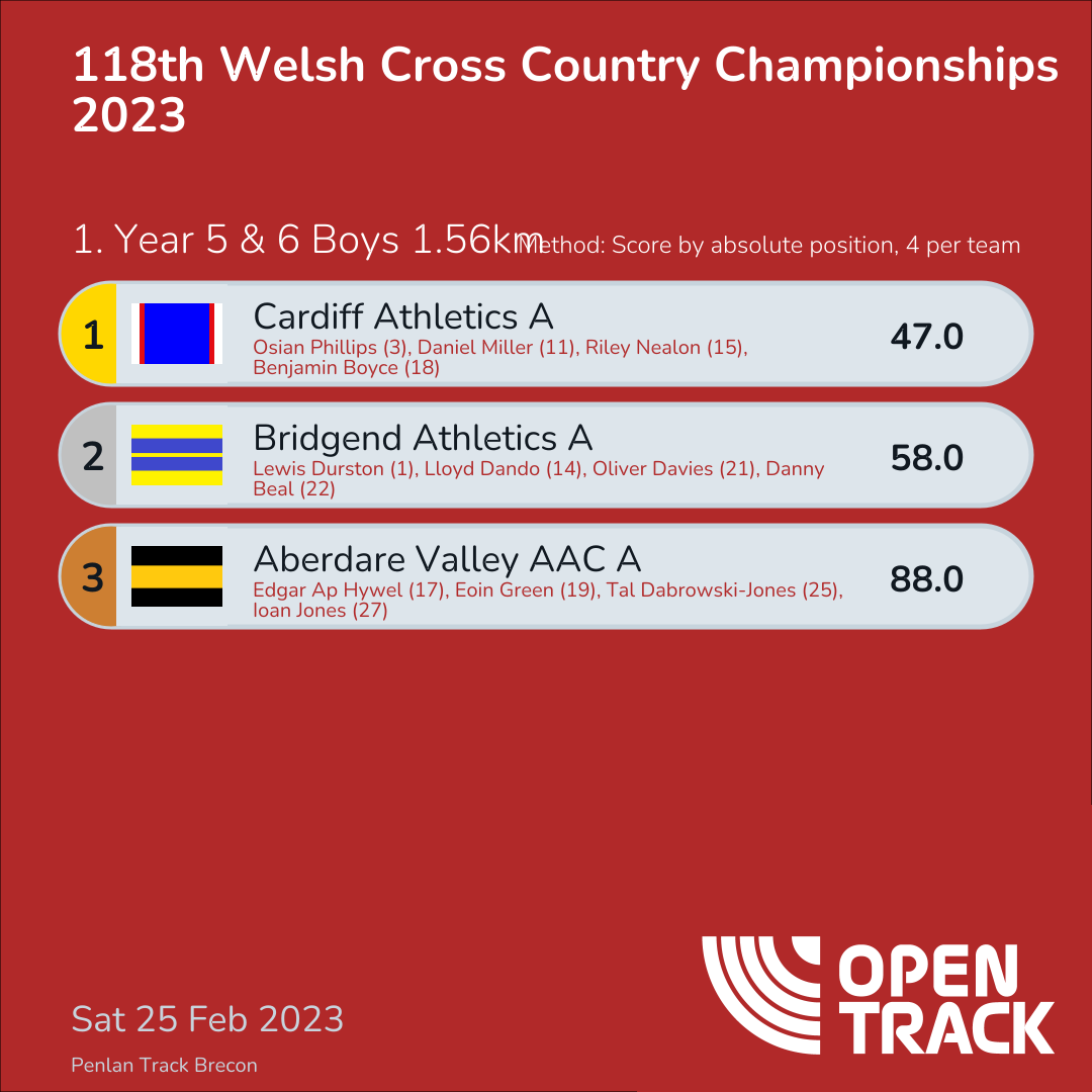 | 2 | 2 | Tomos Cai Davies | U11B |