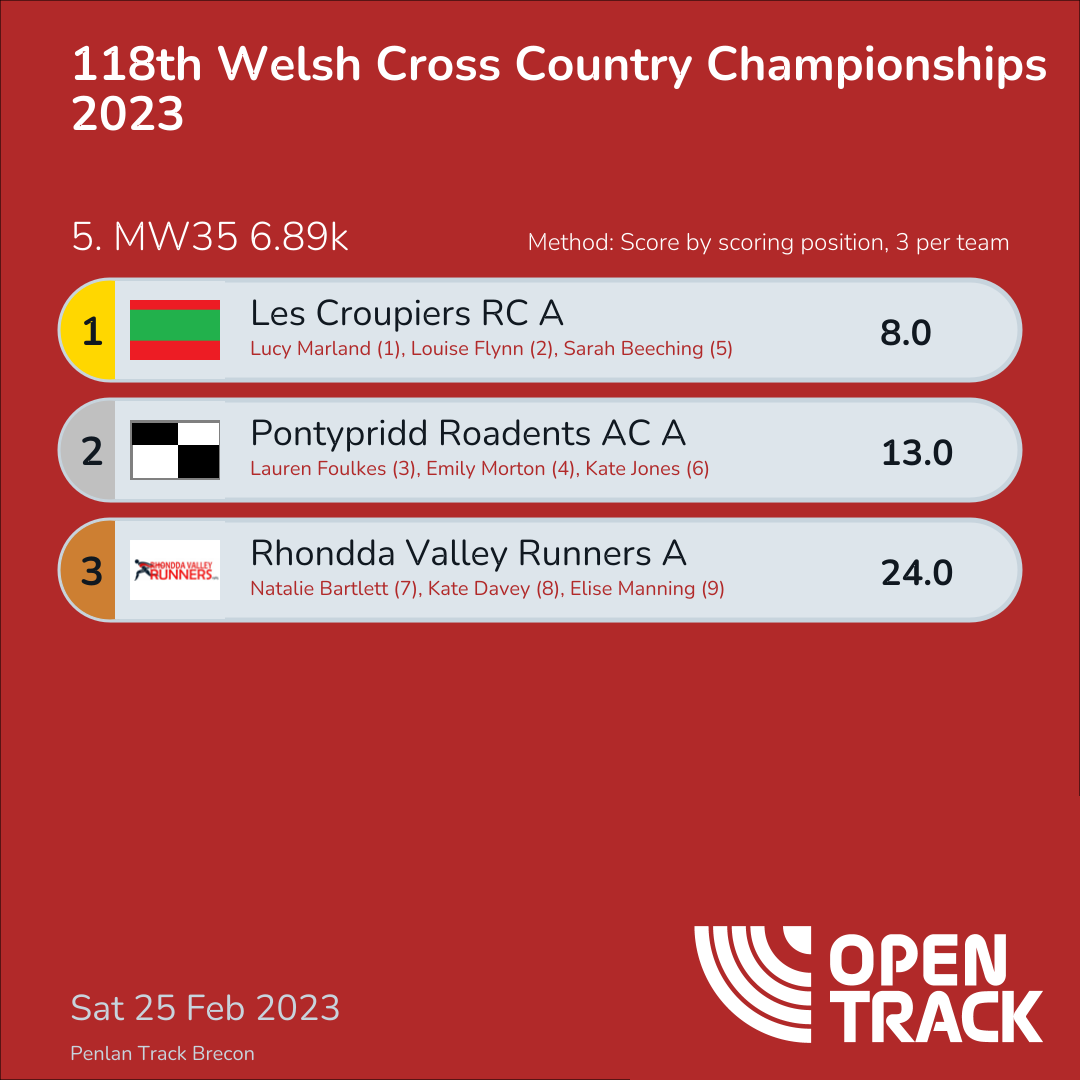 13.0 | 62: Lauren Foulkes (3), 89: Emily Morton (4), 98: Kate Jones (6) | |