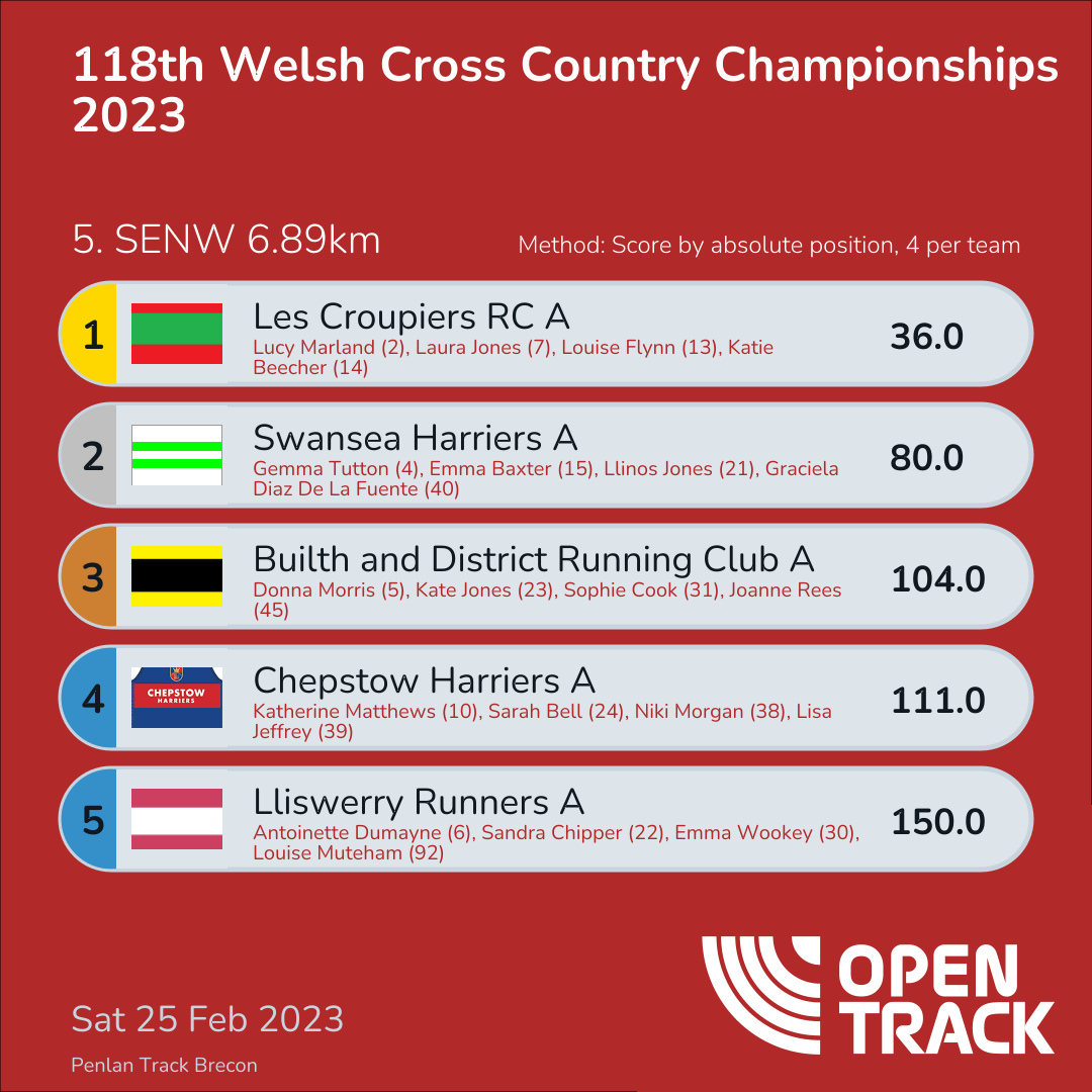 36.0 | 2: Lucy Marland (2), 7: Laura Jones (7), 13: Louise Flynn (13), 14: Katie Beecher (14) | |