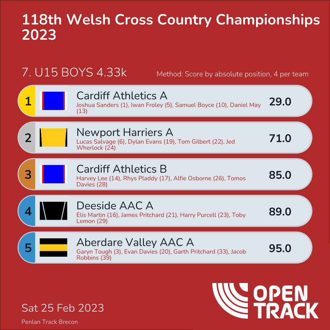 89.0 | 16: Elis Martin (16), 21: James Pritchard (21), 23: Harry Purcell (23), 29: Toby Lemon (29) | |