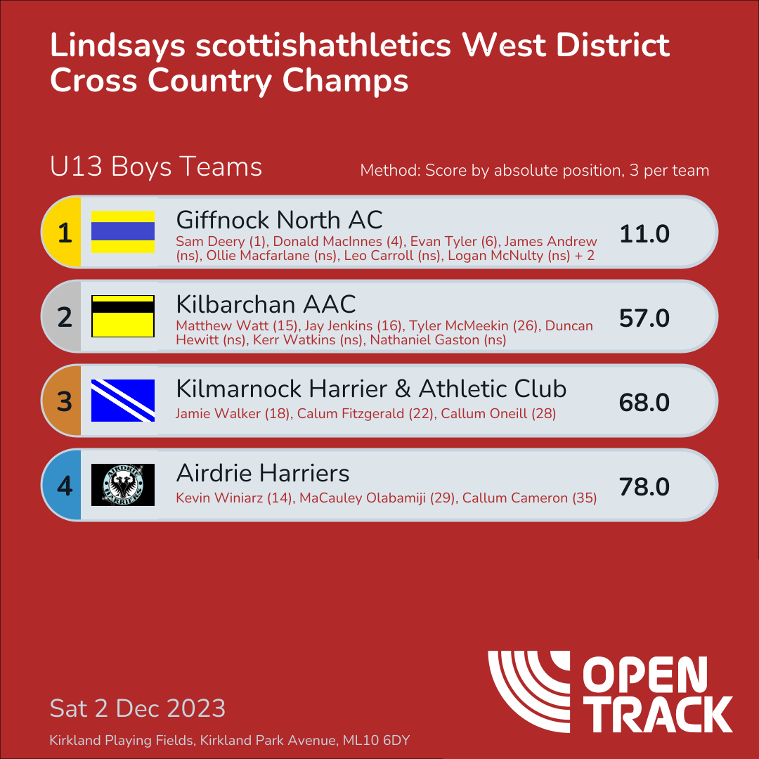 11.0 | 1: Sam Deery (1), 4: Donald MacInnes (4), 6: Evan Tyler (6) | |