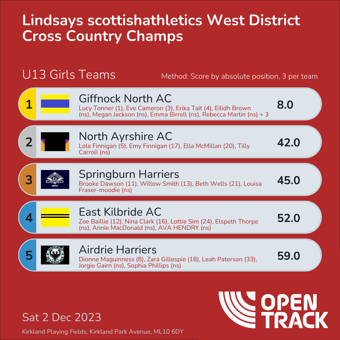 | 3 | 3 | Eve Cameron | U13G |