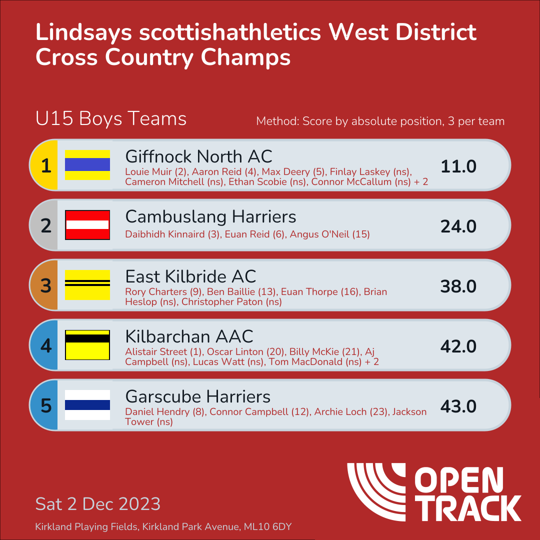 | 6 | 6 | Euan Reid | U15B |