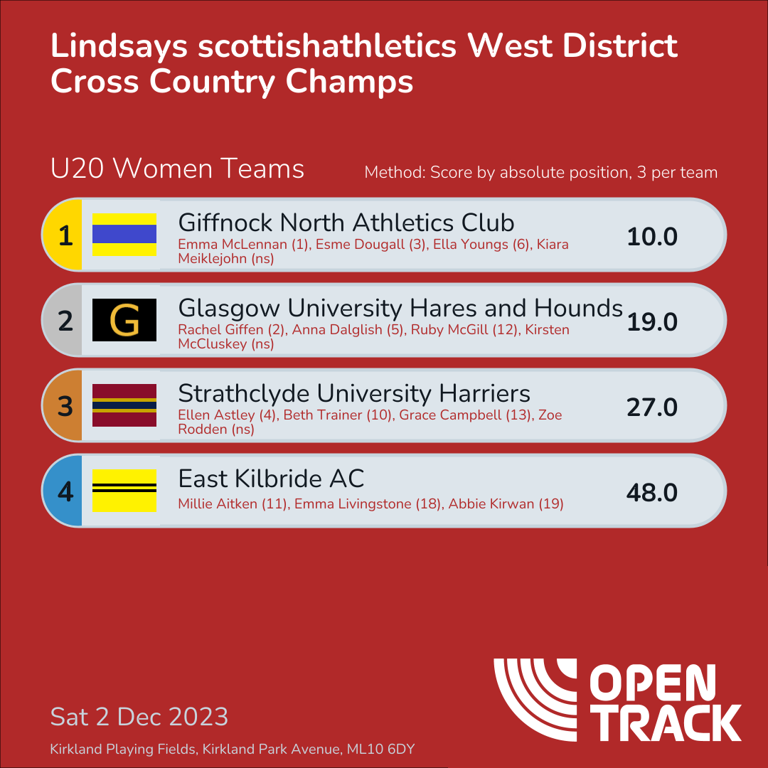 48.0 | 11: Millie Aitken (11), 18: Emma Livingstone (18), 19: Abbie Kirwan (19) |