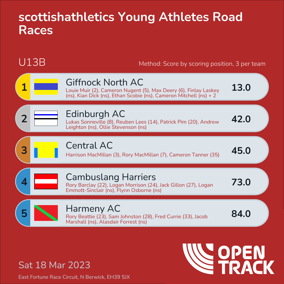 13.0 | 2: Louie Muir (2), 5: Cameron Nugent (5), 6: Max Deery (6) | |