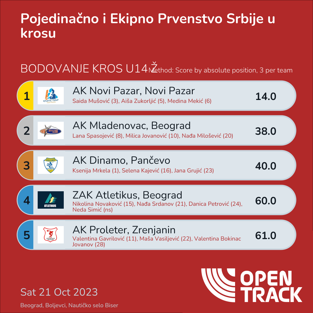 | 1 | 1 | Ksenija Mrkela | U14G |