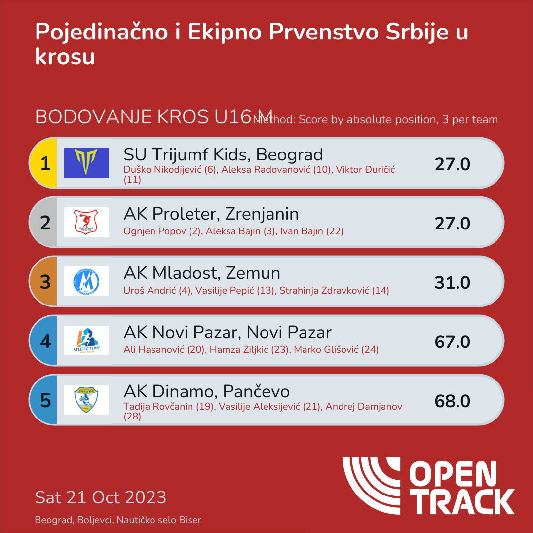 | 4 | 4 | Uroš Andrić | U16B |