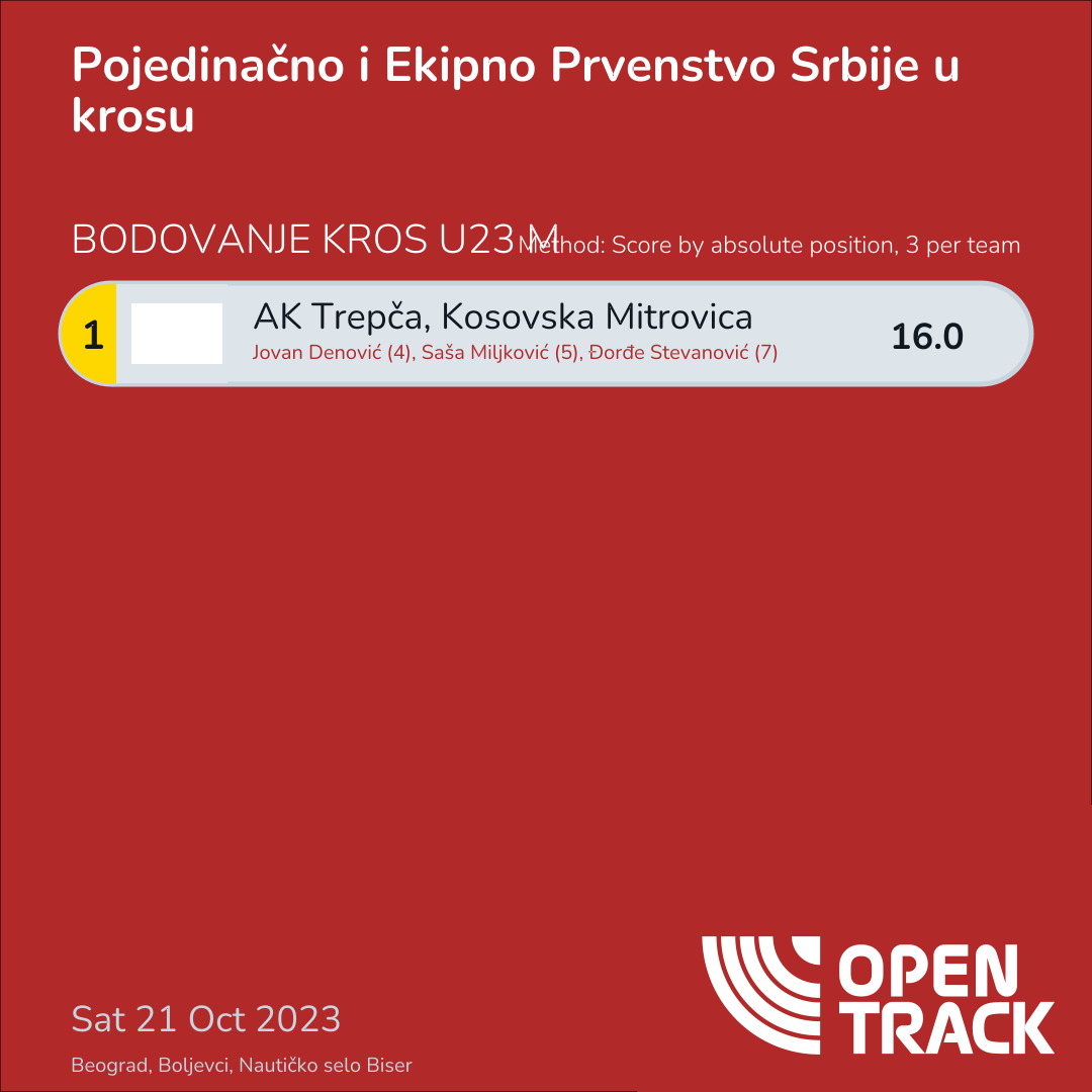 | 6 | - | Darko Marisavljević | U23M |
