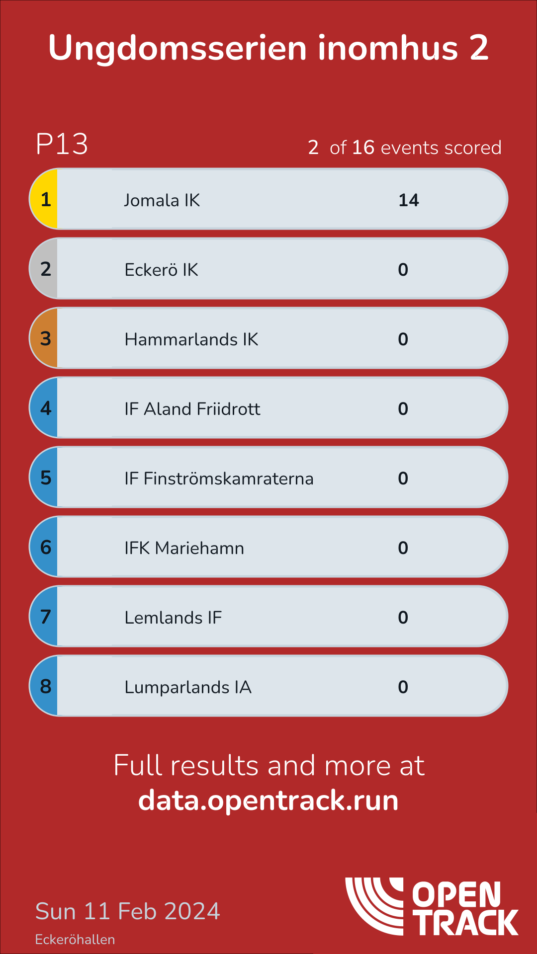- Winner IFK: 21 (Scored 2 out of 16 events) (click to show results)| Team: |