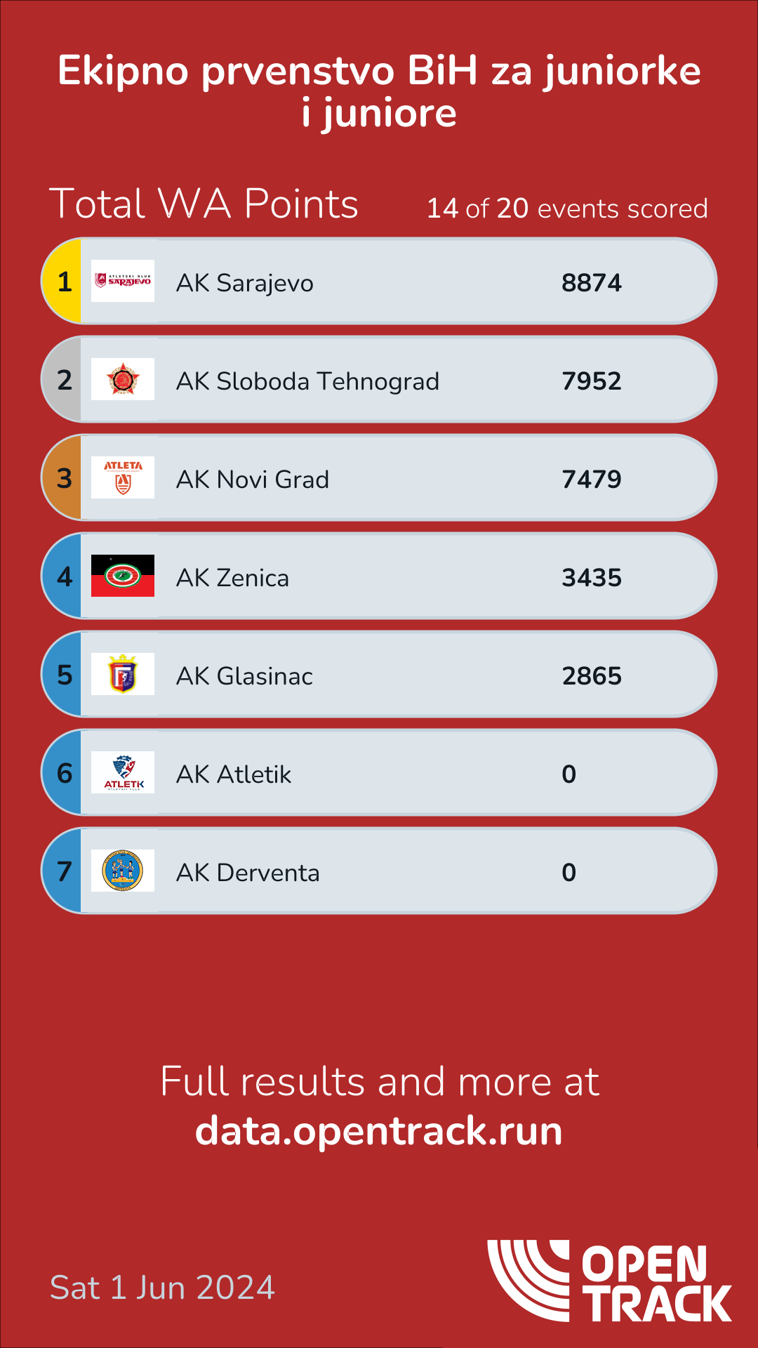 | 800m Ž | 353 | 704 | 585 | 0 | 0 | 0 | 0 |
