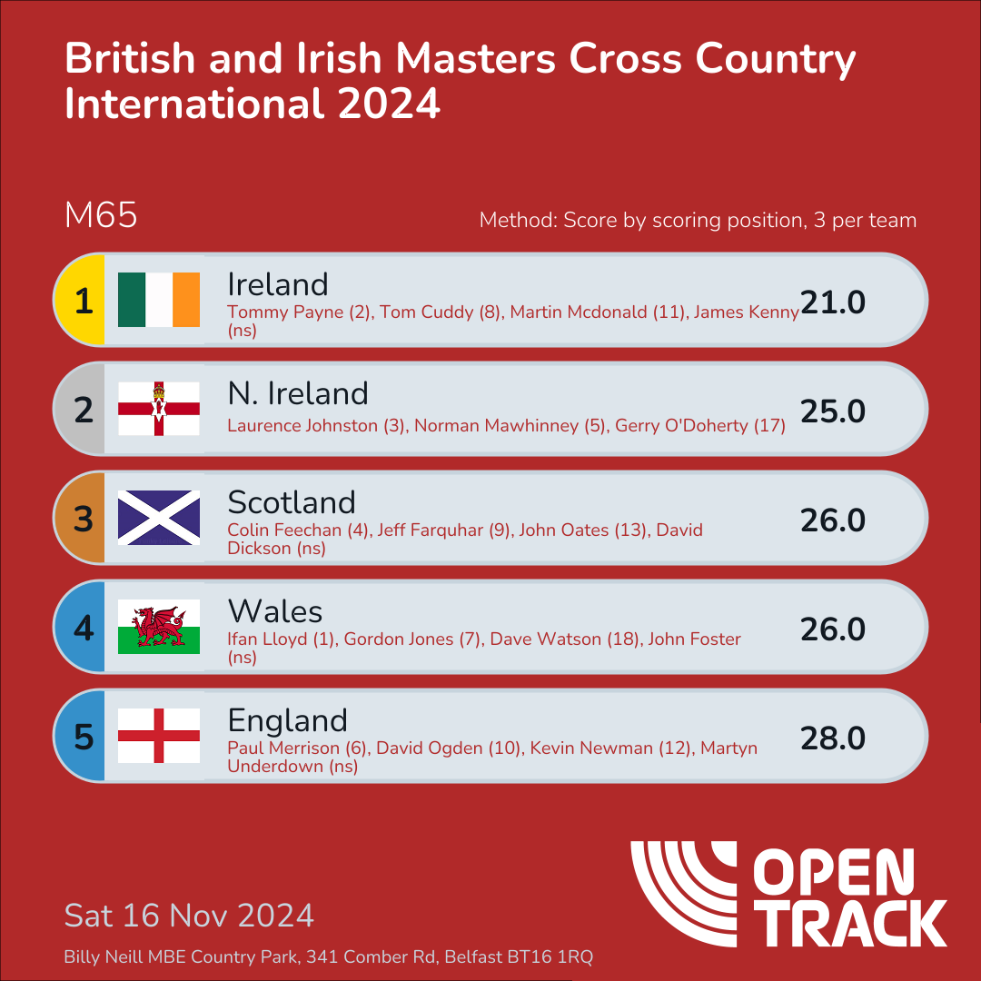 | 5 | 5 | Norman Mawhinney | M65 |
