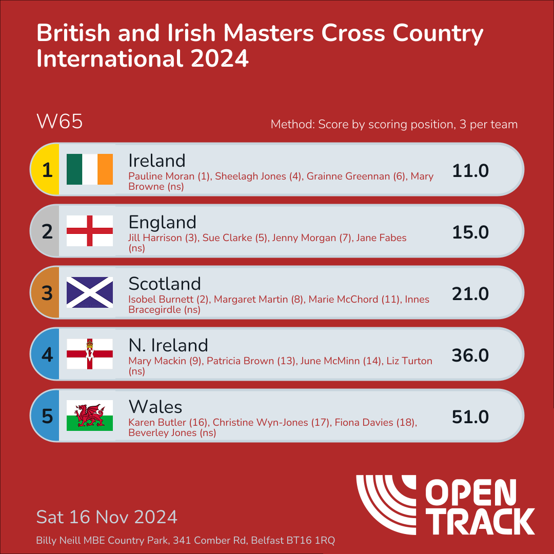 11.0 | 29: Pauline Moran (1), 34: Sheelagh Jones (4), 43: Grainne Greennan (6) | |