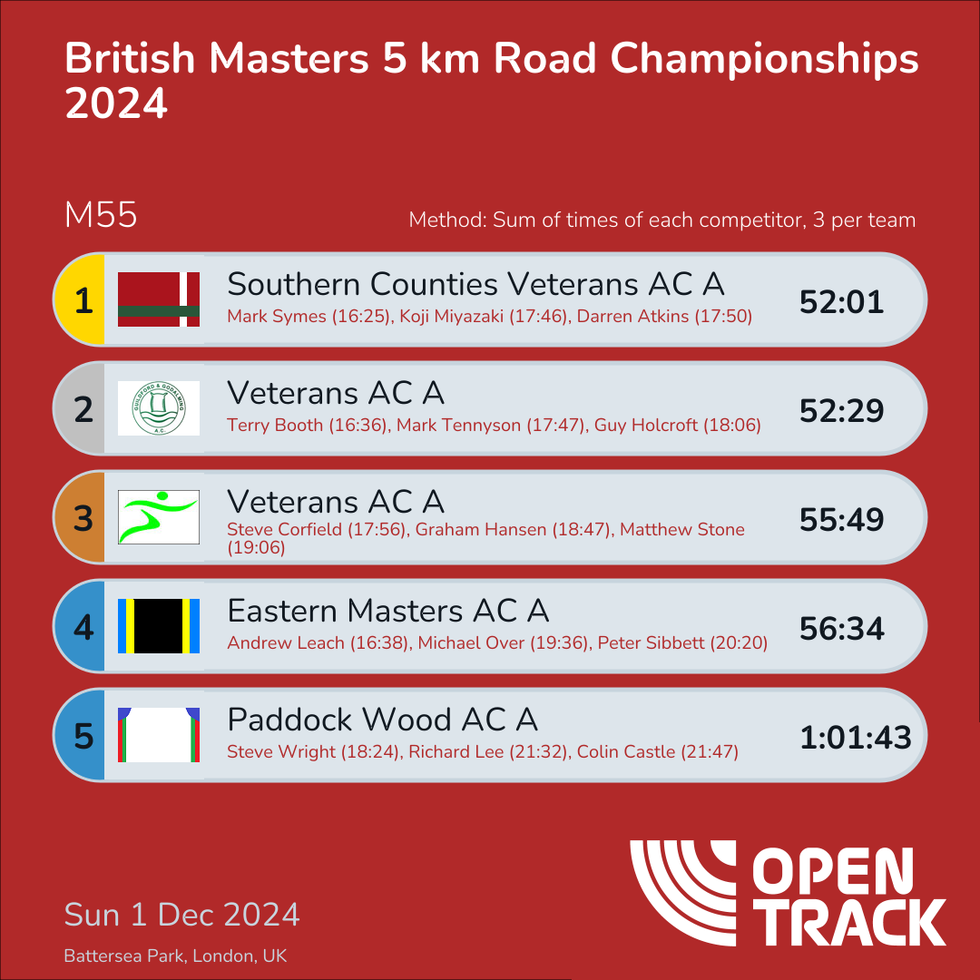 | 3 | SOC-A | 55:49 | 71: Steve Corfield (17:56), 98: Graham Hansen (18:47), 110: Matthew Stone (19:06) | |