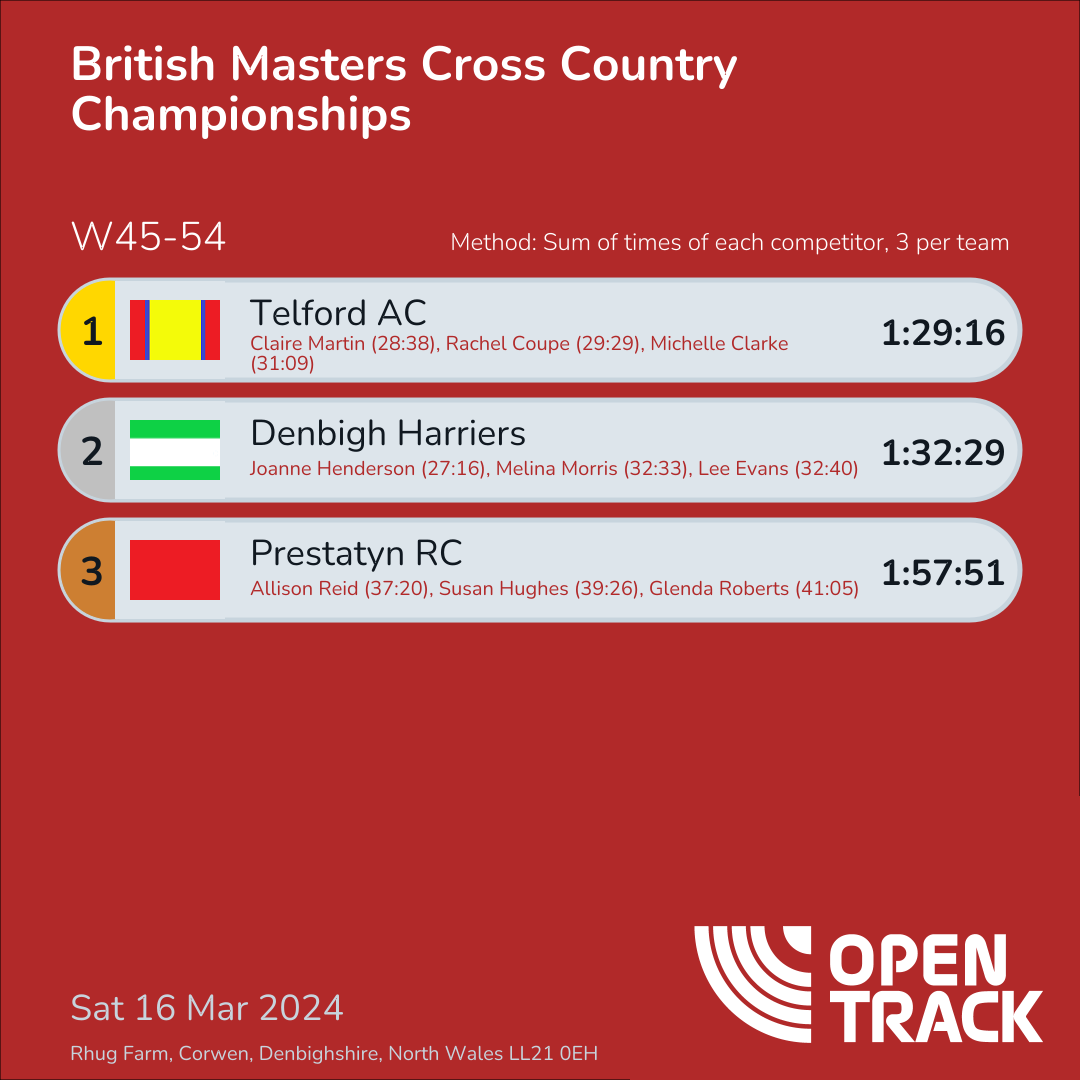 1:32:29 | 9: Joanne Henderson (27:16), 42: Melina Morris (32:33), 43: Lee Evans (32:40) | |