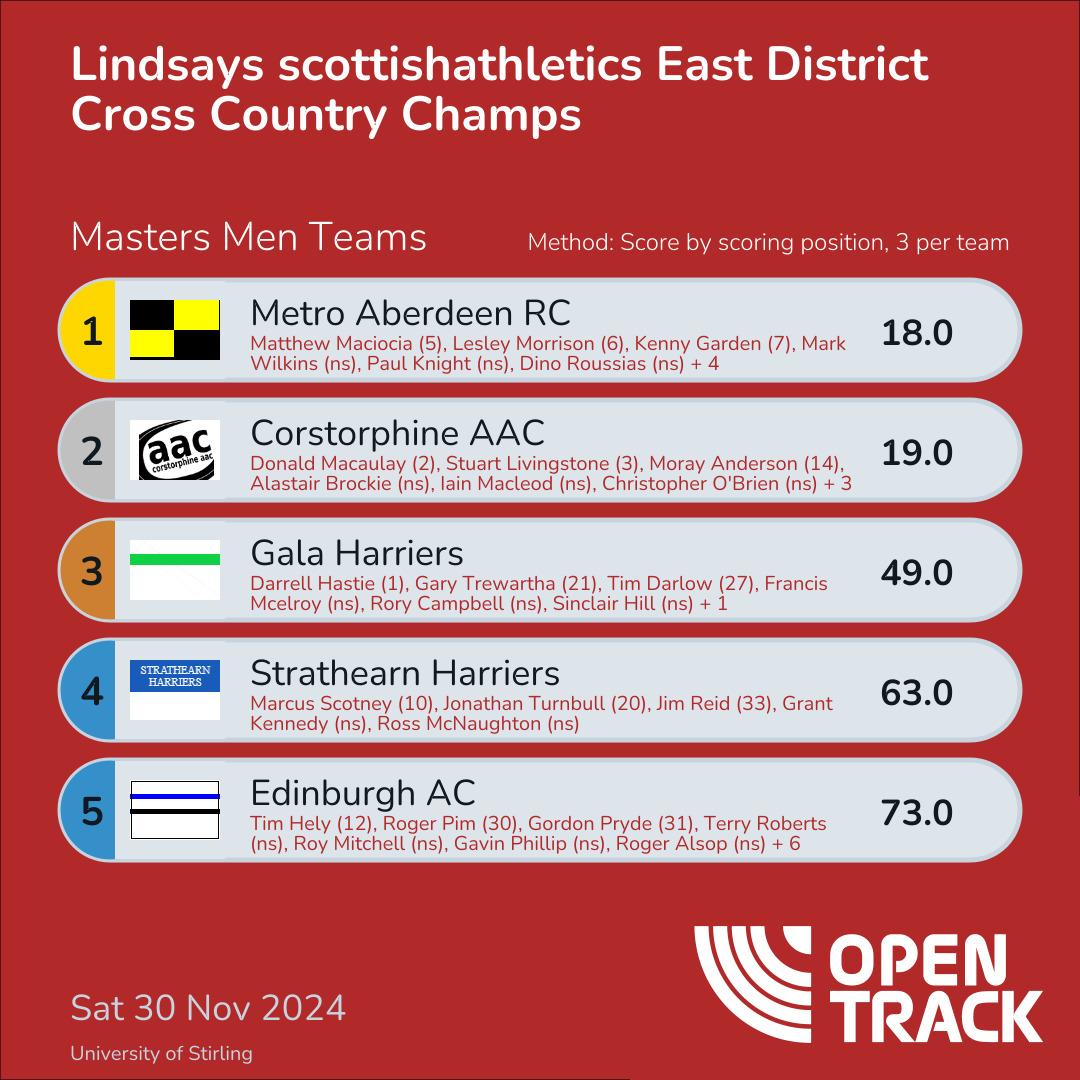 | 34 | 3 | Stuart Livingstone | M40 |