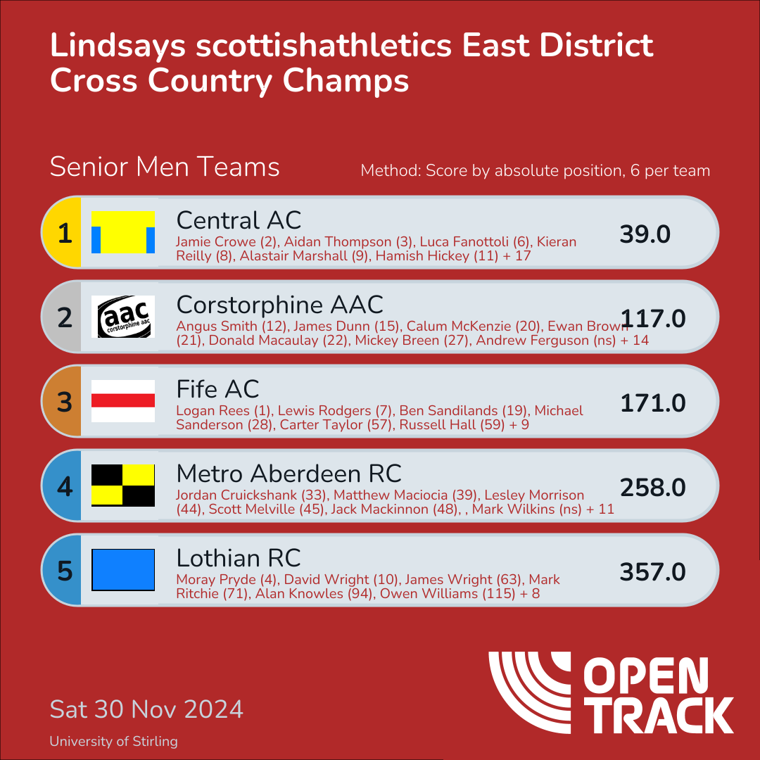 258.0 | 33: Jordan Cruickshank (33), 39: Matthew Maciocia (39), 44: Lesley Morrison (44), 45: Scott Melville (45), 48: Jack Mackinnon (48), 49: Kenny Garden (49) | |