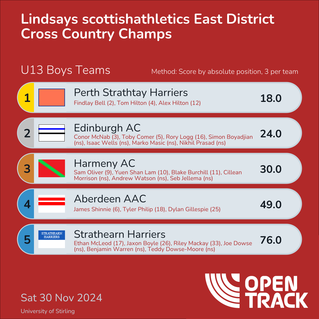 | 2 | 2 | Findlay Bell | U13B |
