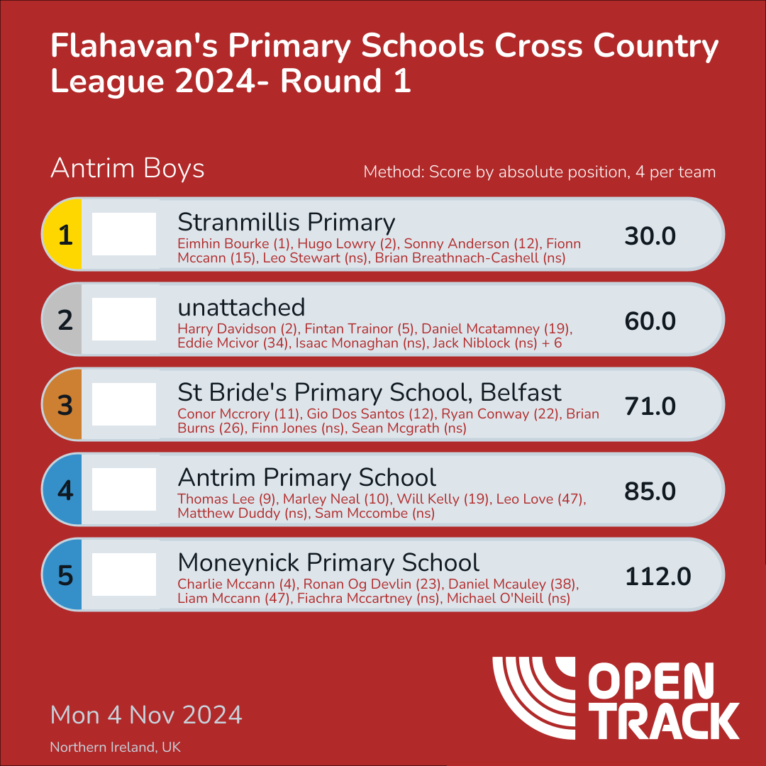 30.0 | 1: Eimhin Bourke (1), 2: Hugo Lowry (2), 12: Sonny Anderson (12), 15: Fionn Mccann (15) | |