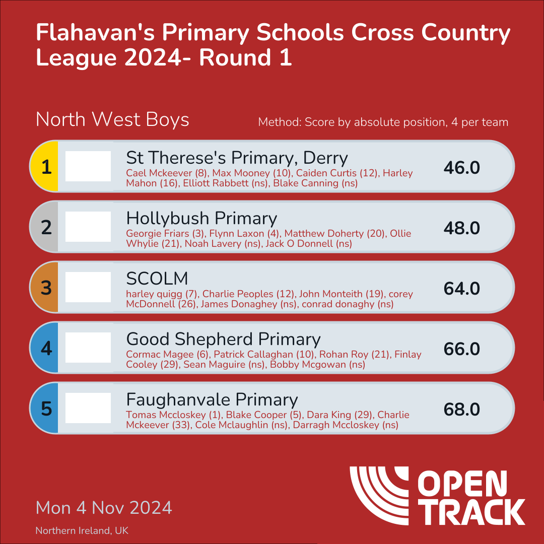 66.0 | 6: Cormac Magee (6), 10: Patrick Callaghan (10), 21: Rohan Roy (21), 29: Finlay Cooley (29) | |