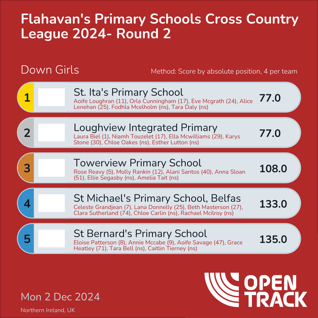 77.0 | 11: Aoife Loughran (11), 17: Orla Cunningham (17), 24: Eve Mcgrath (24), 25: Alice Lenehan (25) | |