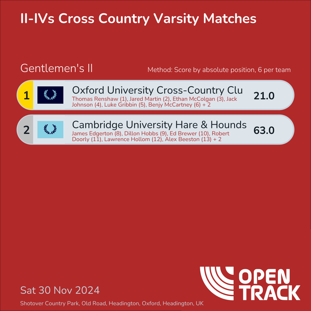 63.0 | 8: James Edgerton (8), 9: Dillon Hobbs (9), 10: Ed Brewer (10), 11: Robert Doorly (11), 12: Lawrence Hollom (12), 13: Alex Beeston (13) |