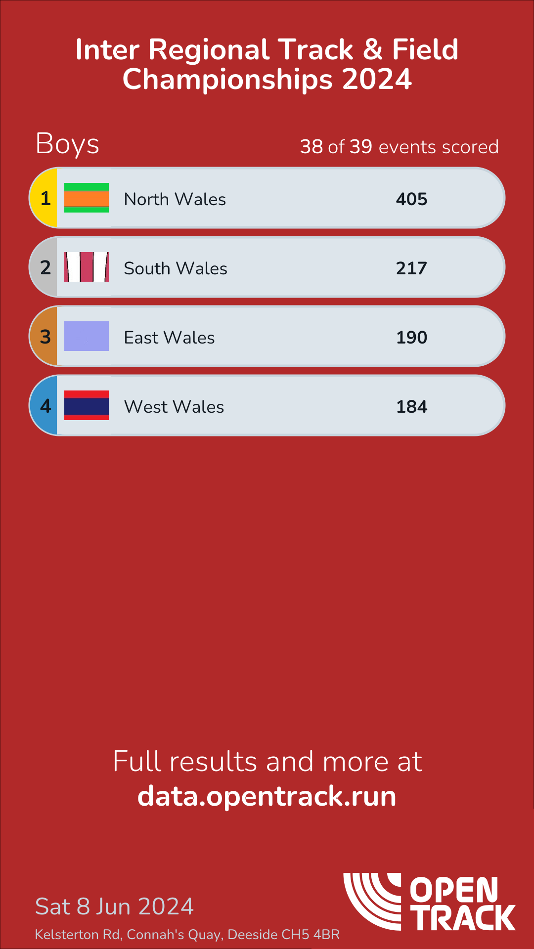 - Winner NWAL: 405 (Scored 38 out of 39 events)