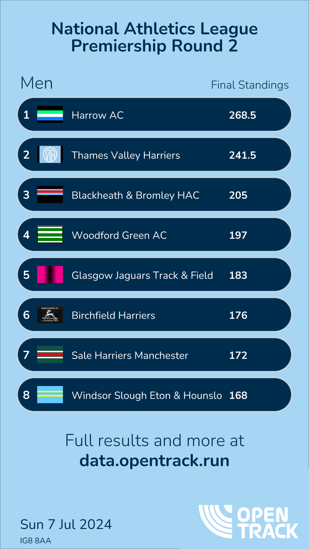 - Winner HARR: 268.50 (Scored 18 out of 18 events) (click to show results)| Team: |