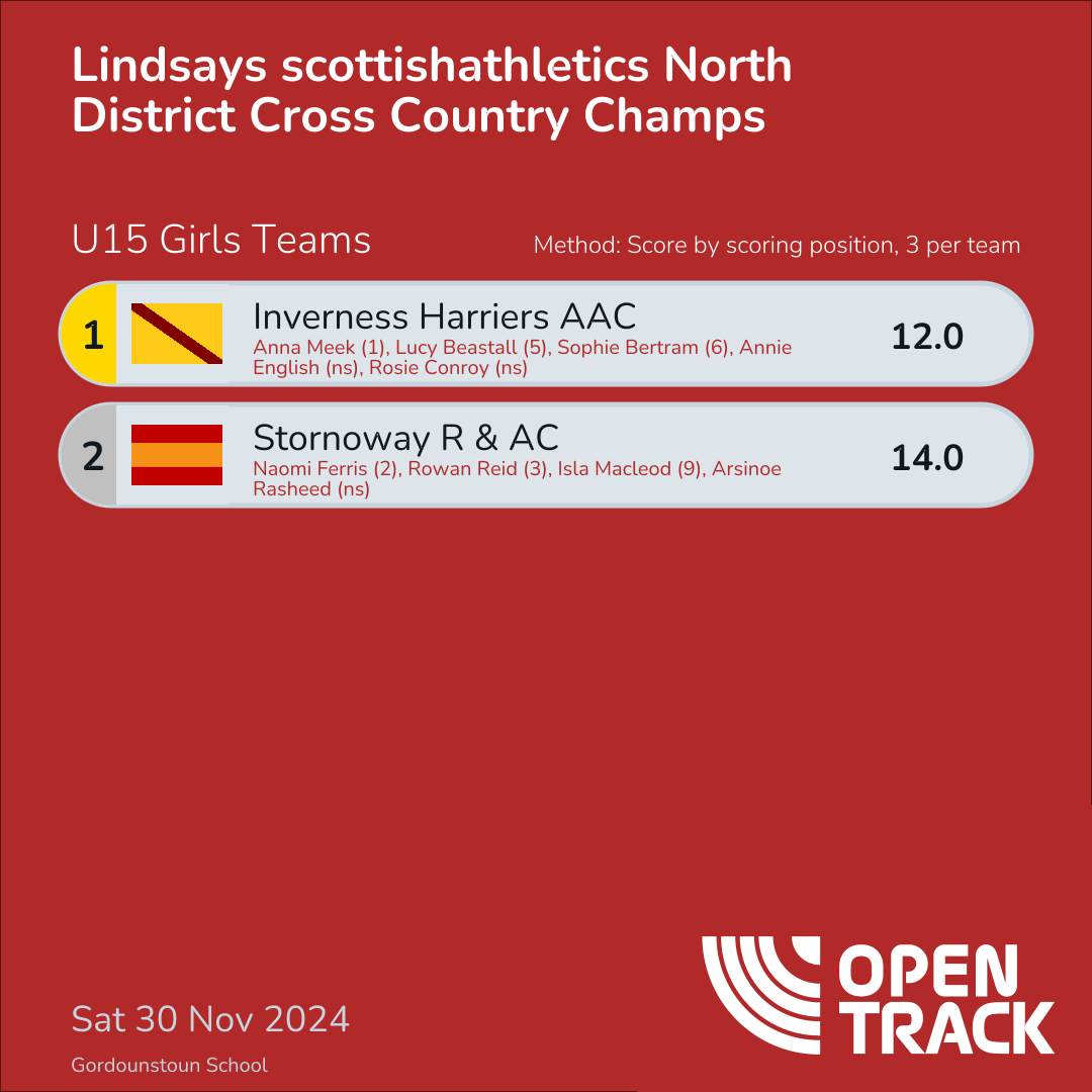 14.0 | 2: Naomi Ferris (2), 3: Rowan Reid (3), 9: Isla Macleod (9) |