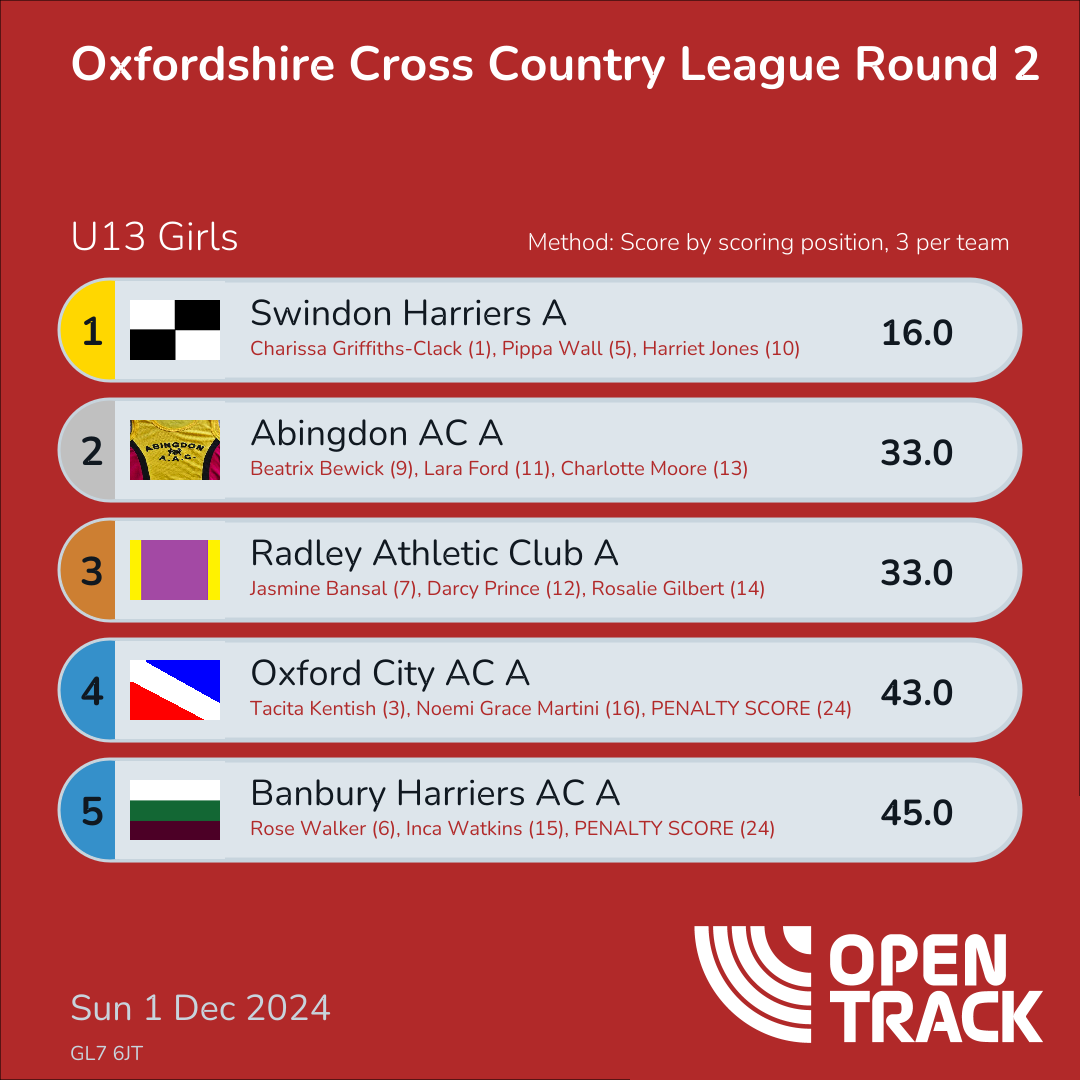 | 7 | TKTRI-A | 50.0 | 16: Harriet Saunders (2), 24: PENALTY SCORE (24), 24: PENALTY SCORE (24) | |