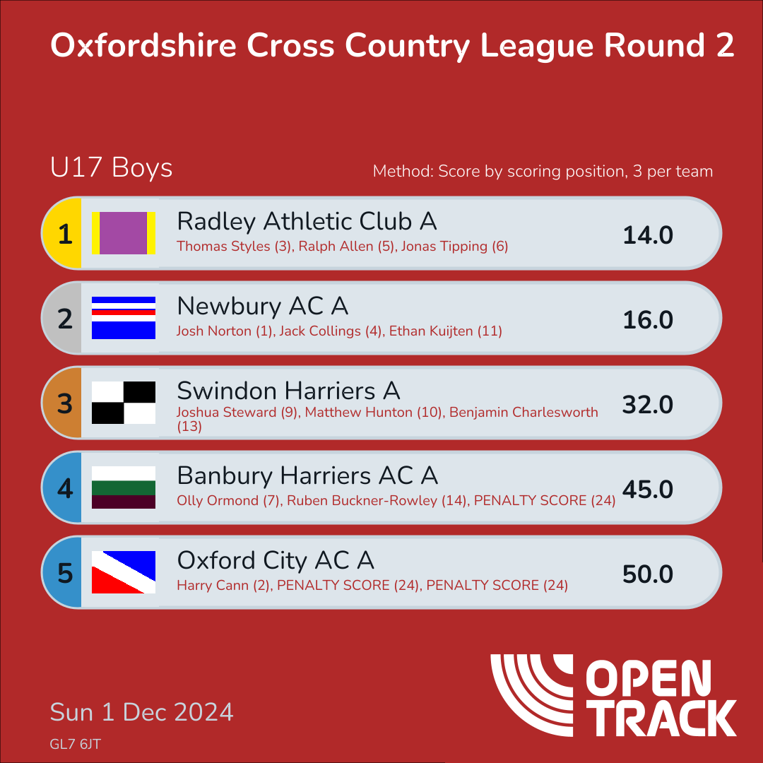 | 2 | 2 | Harry Cann | U17M |