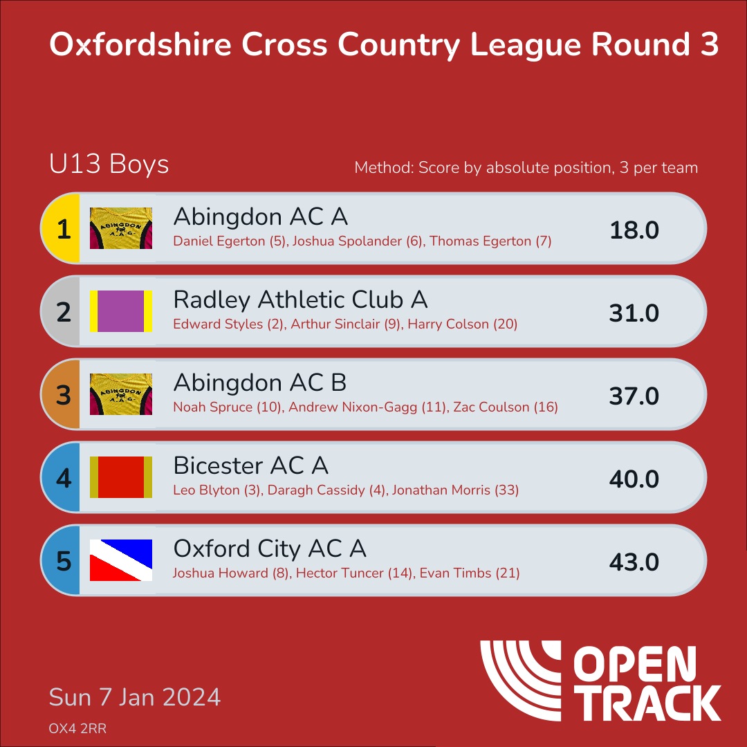 | 5 | 5 | Daniel Egerton | U13B |
