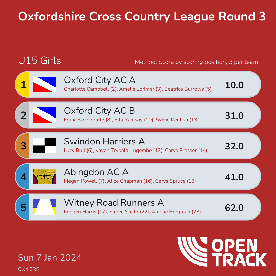 | 39 | 8 | Frances Goodliffe | U15G |