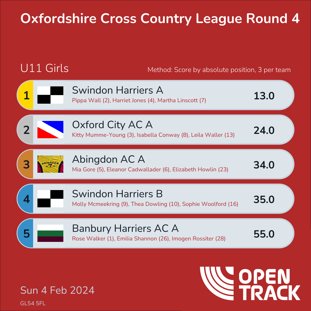 | 4 | 4 | Harriet Jones | U11G |
