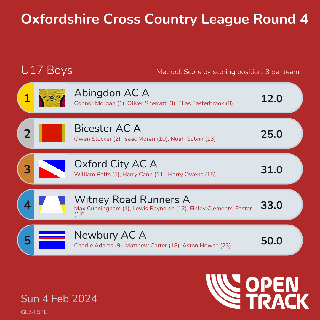 | 3 | 3 | Oliver Sherratt | U17M |