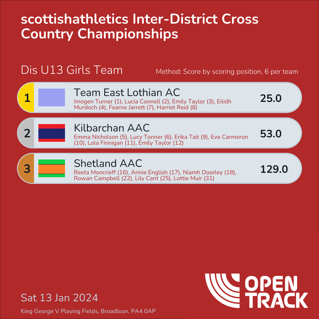 | 5 | 4 | Eilidh Murdoch | U13G |