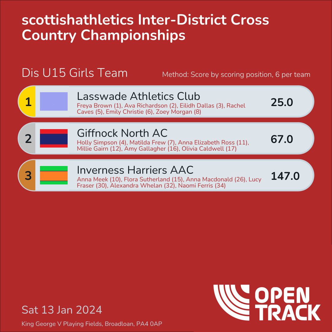 | 8 | 3 | Eilidh Dallas | U15G |