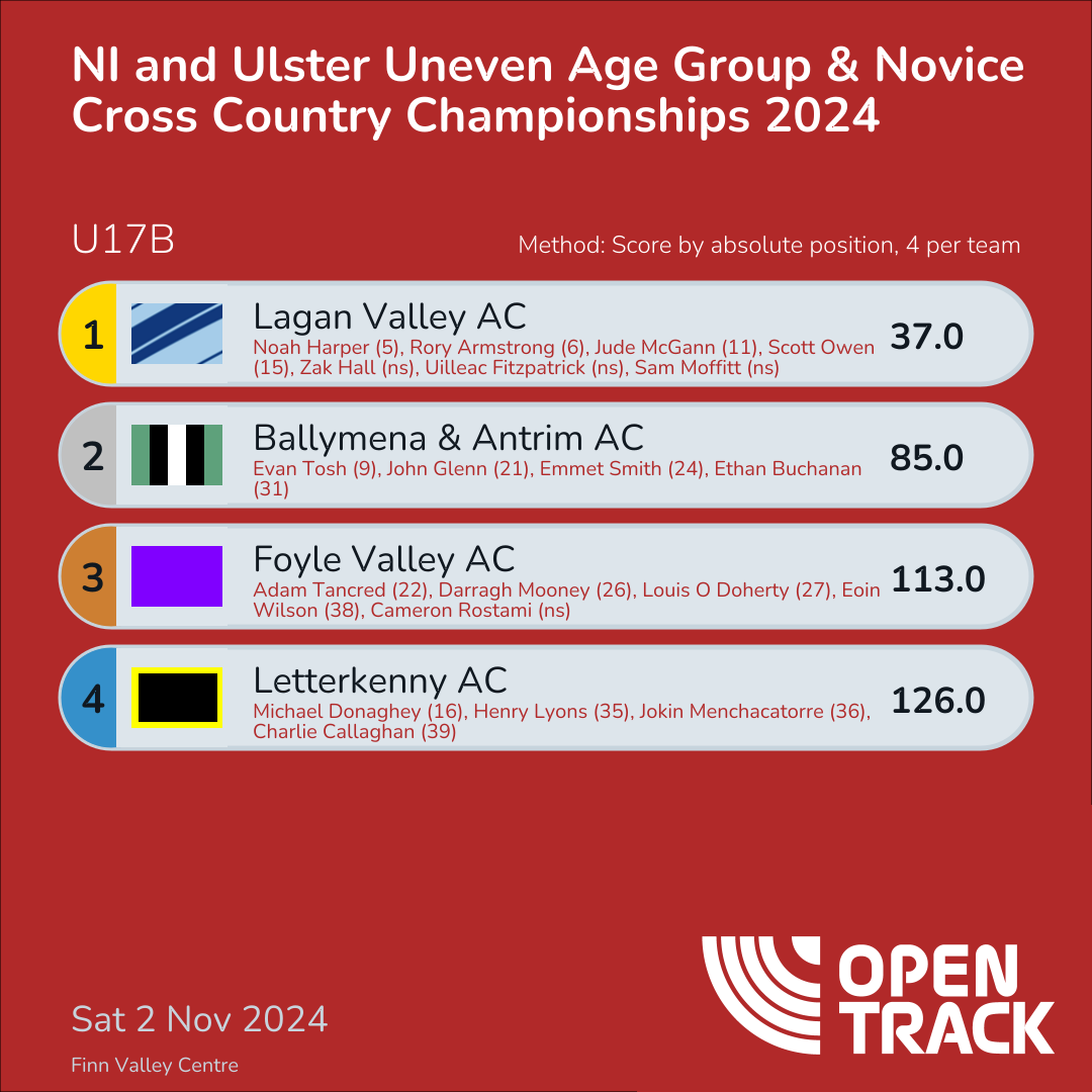 37.0 | 5: Noah Harper (5), 6: Rory Armstrong (6), 11: Jude McGann (11), 15: Scott Owen (15) | |