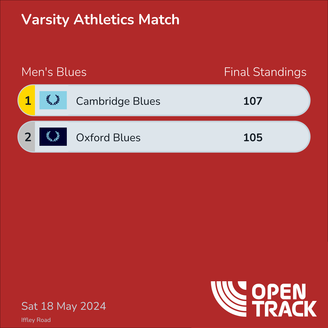 | 100m - Women Blues | 8 | 3 |