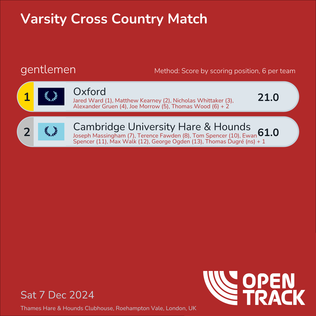 61.0 | 7: Joseph Massingham (7), 8: Terence Fawden (8), 10: Tom Spencer (10), 11: Ewan Spencer (11), 12: Max Walk (12), 13: George Ogden (13) |