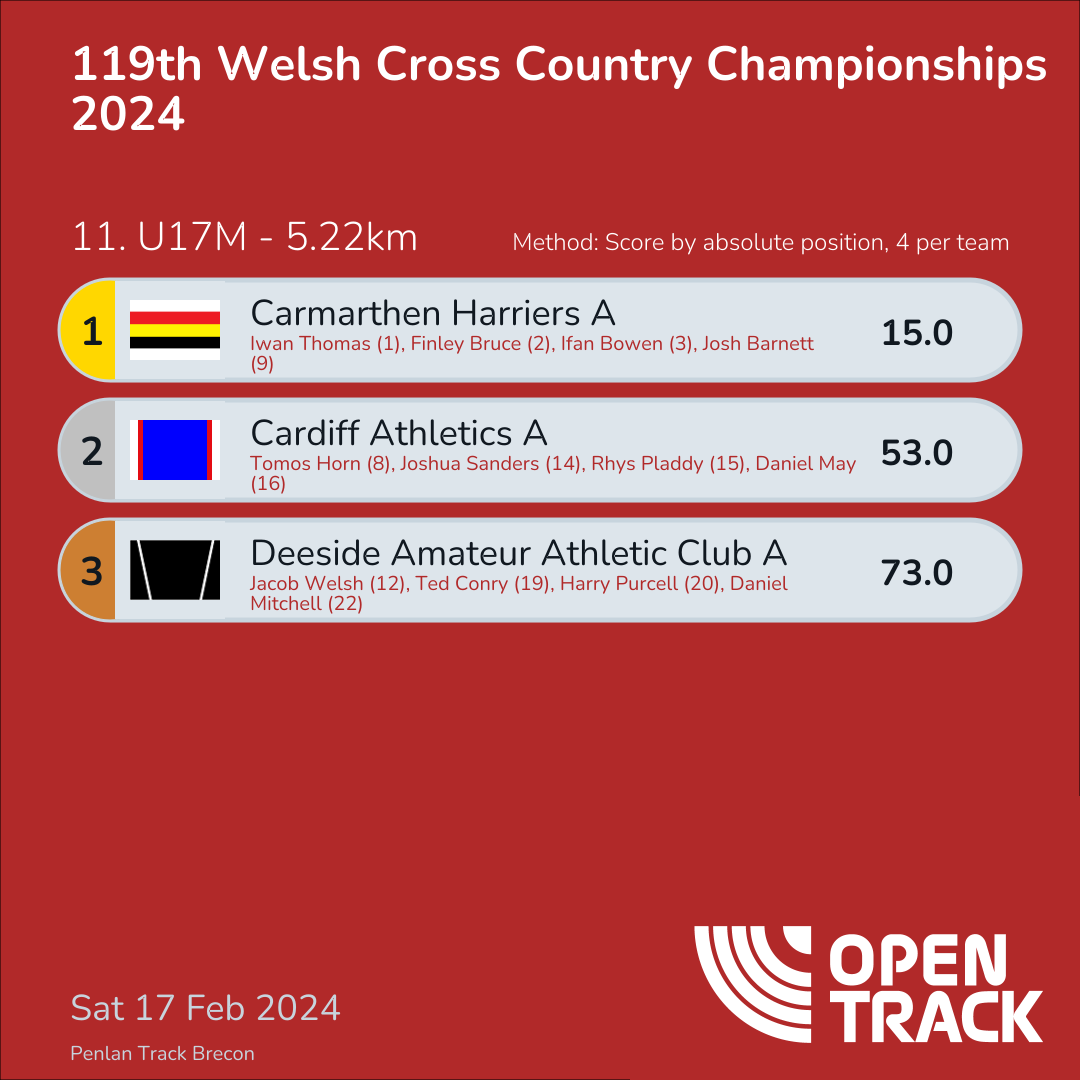 15.0 | 1: Iwan Thomas (1), 2: Finley Bruce (2), 3: Ifan Bowen (3), 9: Josh Barnett (9) | |