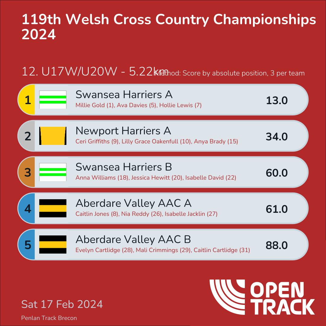 34.0 | 9: Ceri Griffiths (9), 10: Lilly Grace Oakenfull (10), 15: Anya Brady (15) | |